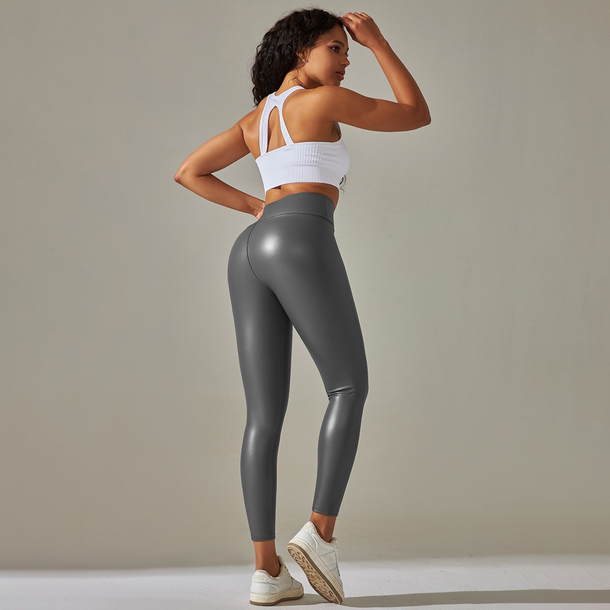 The sleek PU leather material makes these pants a versatile addition to any wardrobe. Perfect for pairing with your favorite tops and accessories, these high-waisted yoga pants can easily transition from fitness wear to a chic outfit for an evening out.
